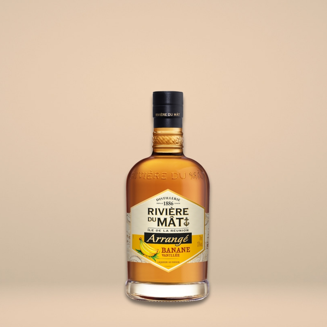 Rhum dal colore ambrato. Realizzato con rum Rivière du Mât, con banane macerate e spezie selezionate. Goloso, e fruttato.